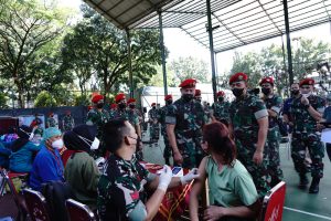 Pelaksanaan vaksinasi ditinjau langsung oleh Komandan Jenderal (Danjen) Kopassus Mayjen TNI Widi Prasetijono didampingi Ny.Novita Widi Prasetijono
