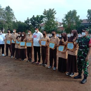 Menurut Serma Deni, dalam kegiatan apel gabungan tersebut juga dilakukan pembagian piagam penghargaan untuk anak anak sekolah yang menjadi perwakilan paskibra tingkat Kecamatan Bekasi Barat, serta penyerahan hadiah juara lomba RW Tangguh.