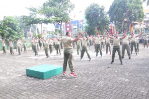 Usai Pelaksanaan Upacara Dandim 0507/Bekasi Beserta seluruh anggota melaksanakan senam kerja dan senam sparco yang di pandu oleh Sertu Marwih selaku Bajas Kodim 0507/Bekasi.