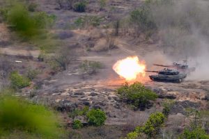 PENGAWALPERSADA.COM, Situbondo-Rangkaian perhelatan akbar latihan bersama yang diikuti 17 negara peserta dan observer Super Garuda Shield ditutup dengan Pelaksanaan CALFEX atau Combined Armed Life Fire Exercise. Kegiatan ini dilaksanakan di daerah latihan Pusat Latihan Tempur 5 Marinir dan dihadiri oleh seluruh pejabat TNI yang terlibat dalam Satuan Tugas Super Garuda Shield beserta para tamu undangan (Distinguished Visitors) yang sebagian besar adalah para observer yang ingin melihat berlangsungnya CALFEX dari dekat di titik tinjau T12 di Baluran, Asembagus, Situbondo, Senin, (11/9/2023).