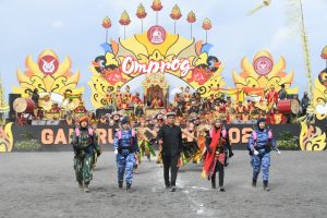 PENGAWALPERSADA.COM, Banyuwangi- Sebuah pertunjukan apik, hasil kolaborasi atraksi dirgantara TNI AU dengan kearifan lokal tarian kolosal Gandrung Sewu, Banyuwangi, mengguncang kota Banyuwangi Jawa Timur yang merupakan kota kelahiran Bapak AURI (R. Suryadharma).