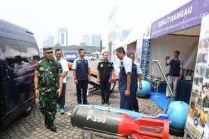Aspers Kasau Marsda TNI M. Fadjar Sumarijadji., M.Sc. didampingi Waaspers Kasau Marsma TNI Ir. Bob Henry Panggabean., S.T. dan sejumlah pejabat TNI AU saat meninjau kesiapan stand TNI AU berpesan untuk menampilkan yang terbaik.